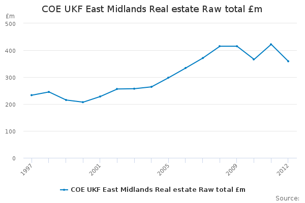 Download this time seriesCOE UKF East Midlands Real estate Raw total £m