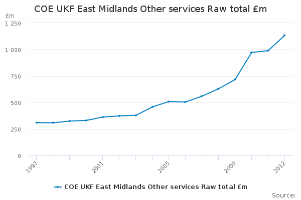 Download this time seriesCOE UKF East Midlands Other services Raw total £m