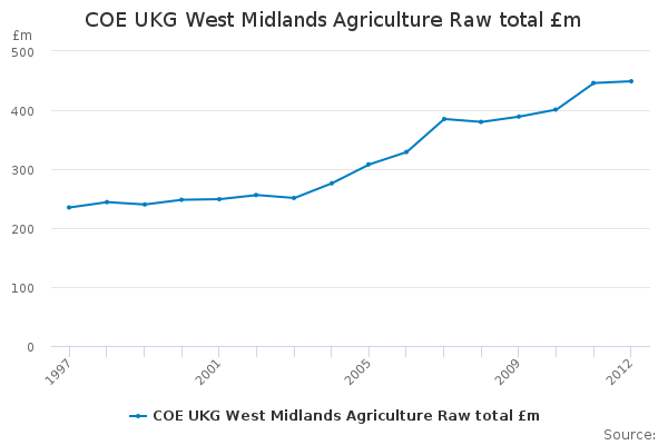 Download this time seriesCOE UKG West Midlands Agriculture Raw total £m