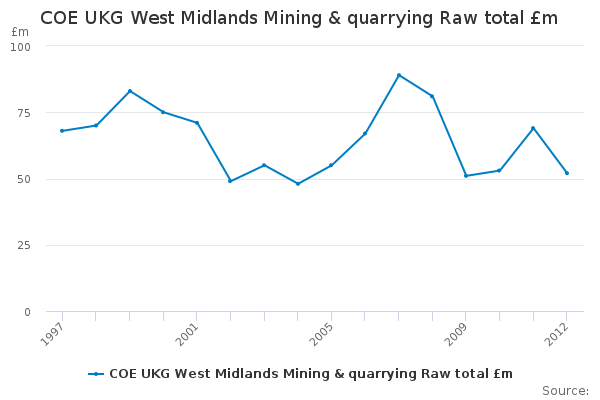 Download this time seriesCOE UKG West Midlands Mining & quarrying Raw total £m