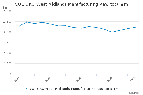 Download this time seriesCOE UKG West Midlands Manufacturing Raw total £m