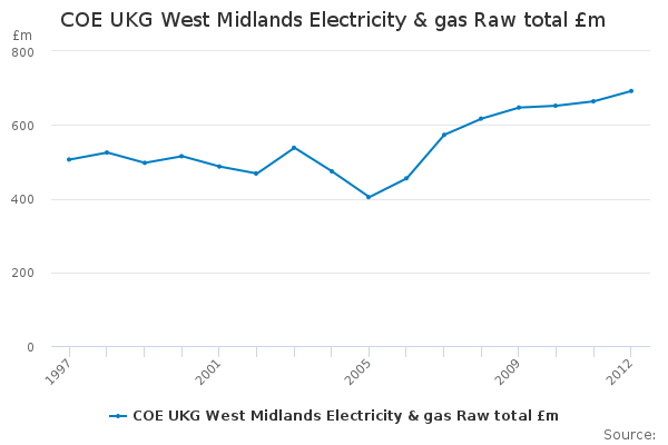 Download this time seriesCOE UKG West Midlands Electricity & gas Raw total £m