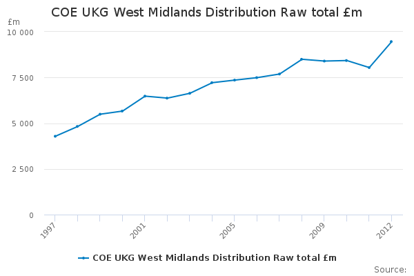 Download this time seriesCOE UKG West Midlands Distribution Raw total £m