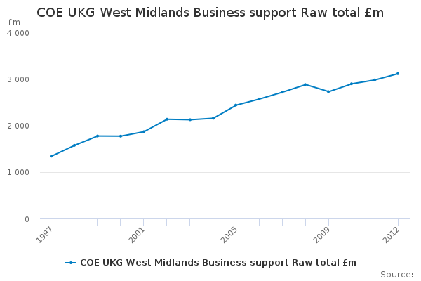 Download this time seriesCOE UKG West Midlands Business support Raw total £m