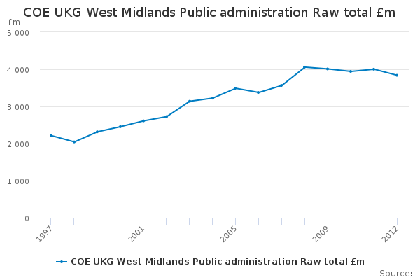 Download this time seriesCOE UKG West Midlands Public administration Raw total £m