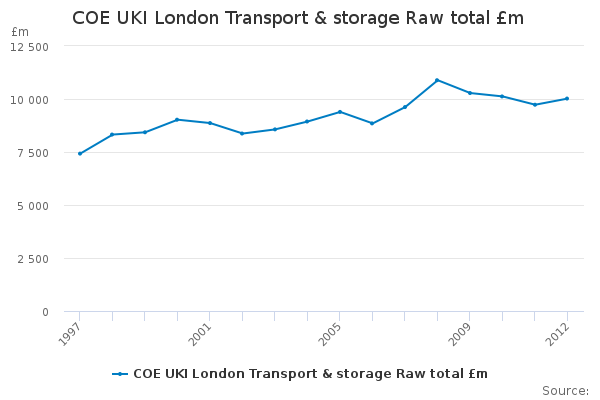 Download this time seriesCOE UKI London Transport & storage Raw total £m