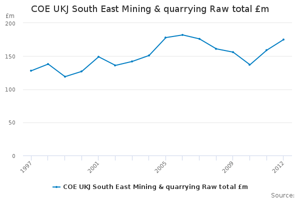 Download this time seriesCOE UKJ South East Mining & quarrying Raw total £m