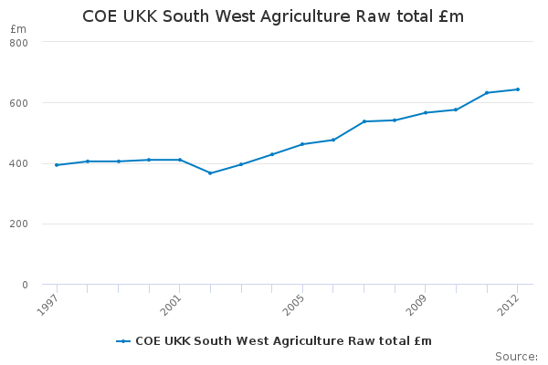 Download this time seriesCOE UKK South West Agriculture Raw total £m