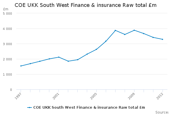 Download this time seriesCOE UKK South West Finance & insurance Raw total £m