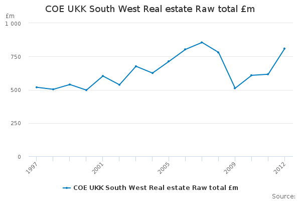 Download this time seriesCOE UKK South West Real estate Raw total £m