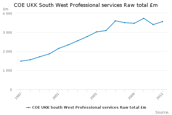 Download this time seriesCOE UKK South West Professional services Raw total £m