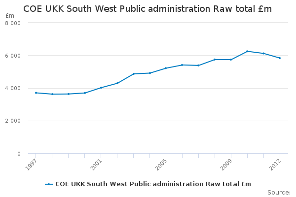 Download this time seriesCOE UKK South West Public administration Raw total £m