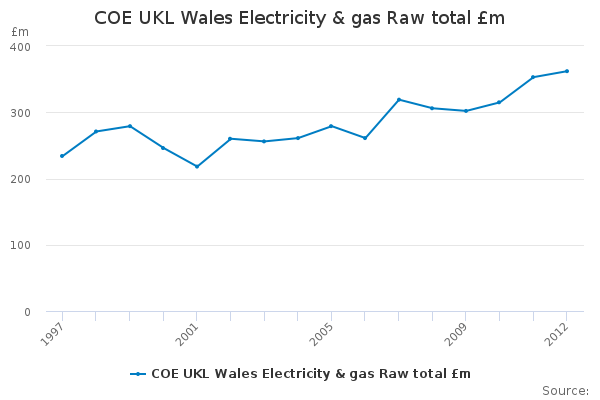 Download this time seriesCOE UKL Wales Electricity & gas Raw total £m