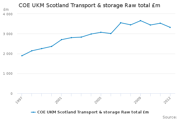 Download this time seriesCOE UKM Scotland Transport & storage Raw total £m