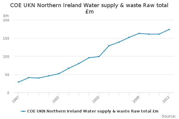 Download this time seriesCOE UKN Northern Ireland Water supply & waste Raw total £m