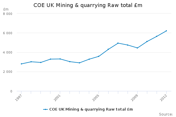 Download this time seriesCOE UK Mining & quarrying Raw total £m