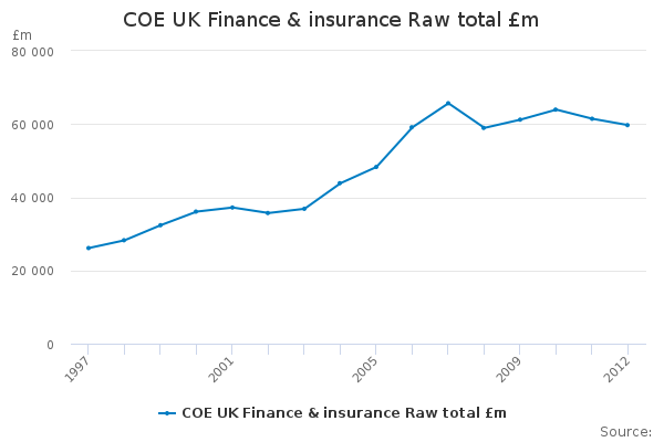 Download this time seriesCOE UK Finance & insurance Raw total £m
