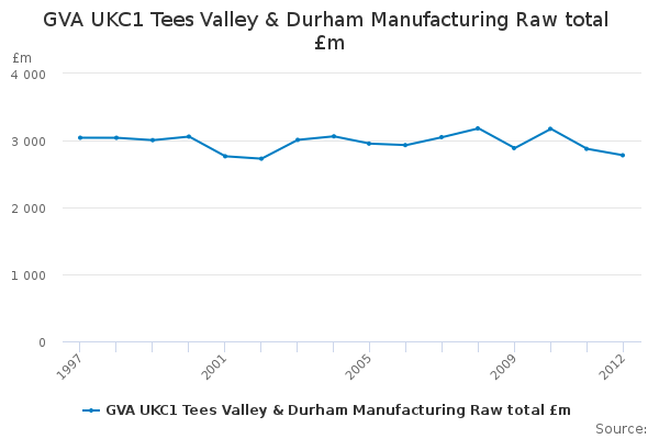 Download this time seriesGVA UKC1 Tees Valley & Durham Manufacturing Raw total £m