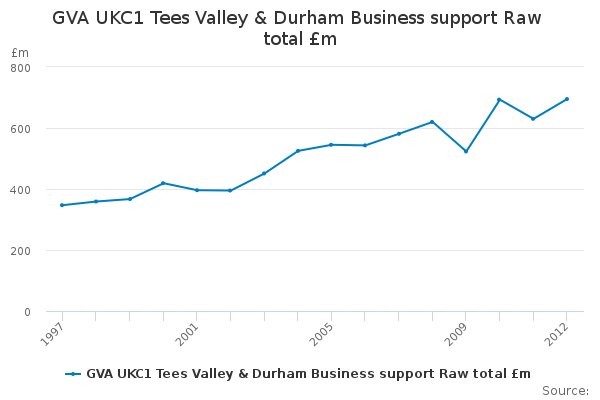 Download this time seriesGVA UKC1 Tees Valley & Durham Business support Raw total £m