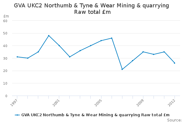 Download this time seriesGVA UKC2 Northumb & Tyne & Wear Mining & quarrying Raw total £m