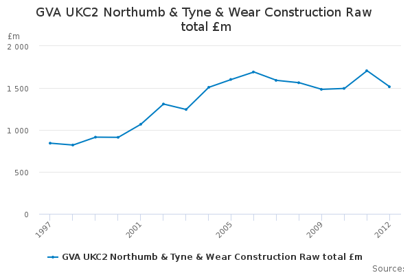 Download this time seriesGVA UKC2 Northumb & Tyne & Wear Construction Raw total £m