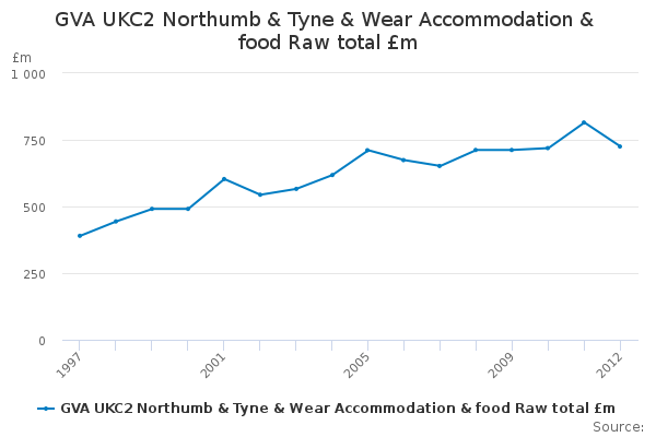 Download this time seriesGVA UKC2 Northumb & Tyne & Wear Accommodation & food Raw total £m