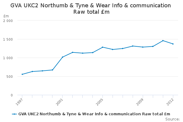Download this time seriesGVA UKC2 Northumb & Tyne & Wear Info & communication Raw total £m