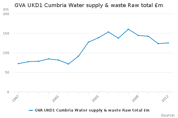 Download this time seriesGVA UKD1 Cumbria Water supply & waste Raw total £m