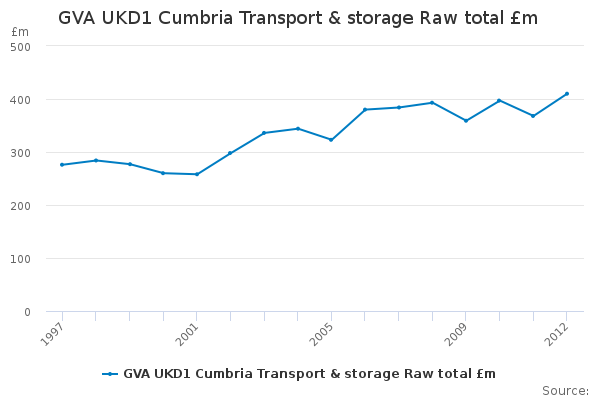 Download this time seriesGVA UKD1 Cumbria Transport & storage Raw total £m