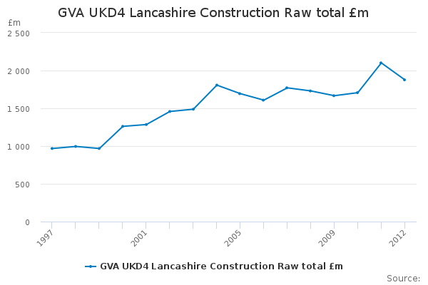 Download this time seriesGVA UKD4 Lancashire Construction Raw total £m