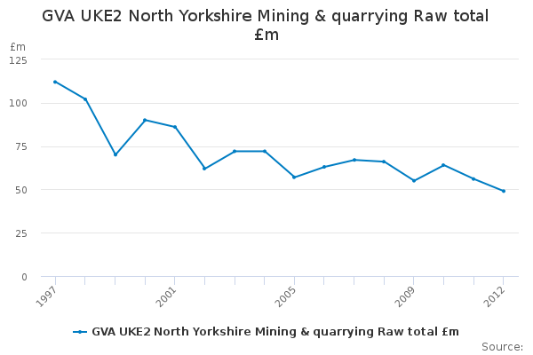 Download this time seriesGVA UKE2 North Yorkshire Mining & quarrying Raw total £m