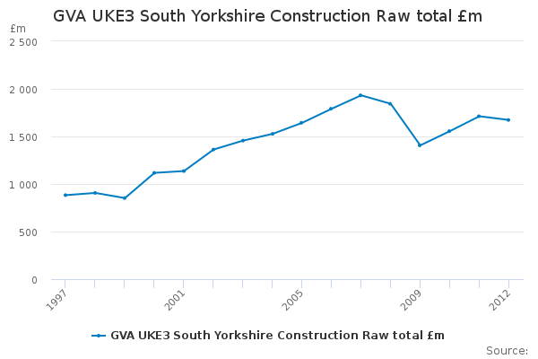 Download this time seriesGVA UKE3 South Yorkshire Construction Raw total £m