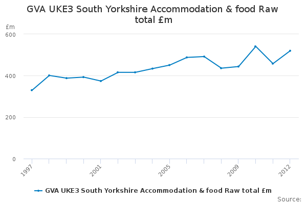 Download this time seriesGVA UKE3 South Yorkshire Accommodation & food Raw total £m