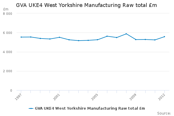 Download this time seriesGVA UKE4 West Yorkshire Manufacturing Raw total £m