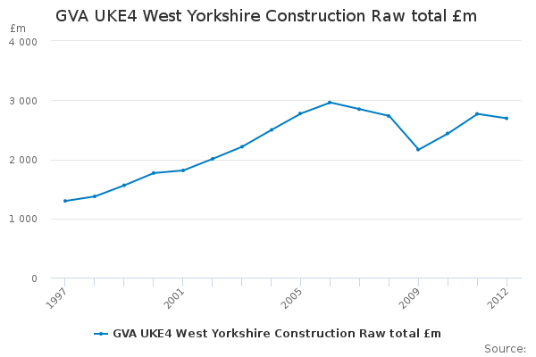 Download this time seriesGVA UKE4 West Yorkshire Construction Raw total £m