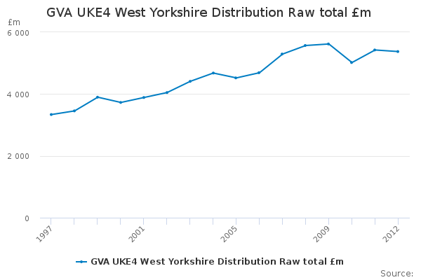 Download this time seriesGVA UKE4 West Yorkshire Distribution Raw total £m