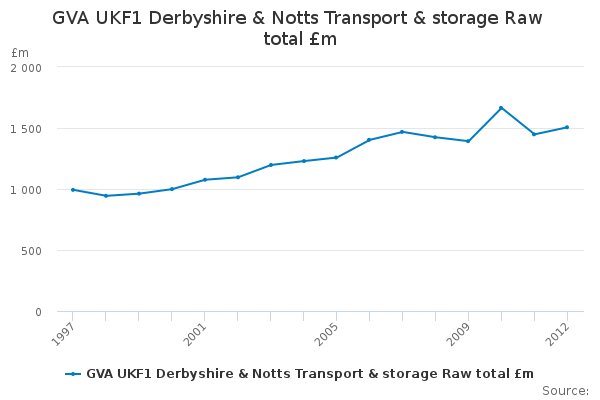 Download this time seriesGVA UKF1 Derbyshire & Notts Transport & storage Raw total £m