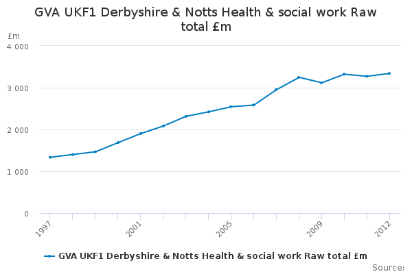 Download this time seriesGVA UKF1 Derbyshire & Notts Health & social work Raw total £m