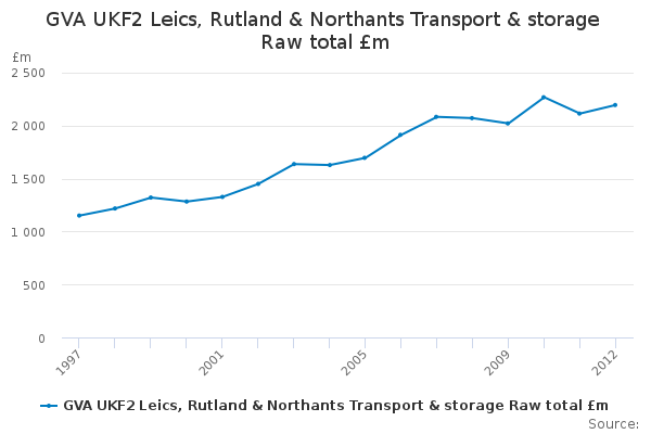 Download this time seriesGVA UKF2 Leics, Rutland & Northants Transport & storage Raw total £m