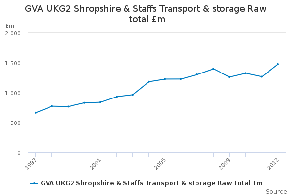 Download this time seriesGVA UKG2 Shropshire & Staffs Transport & storage Raw total £m