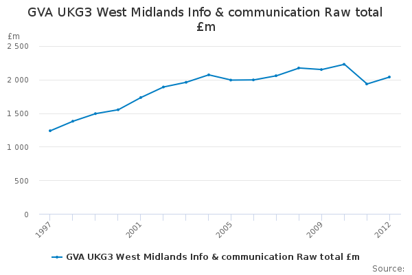 Download this time seriesGVA UKG3 West Midlands Info & communication Raw total £m
