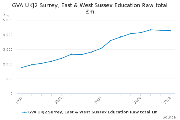 Download this time seriesGVA UKJ2 Surrey, East & West Sussex Education Raw total £m