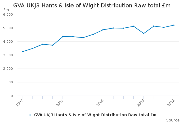 Download this time seriesGVA UKJ3 Hants & Isle of Wight Distribution Raw total £m