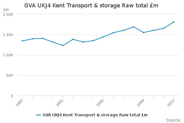 Download this time seriesGVA UKJ4 Kent Transport & storage Raw total £m