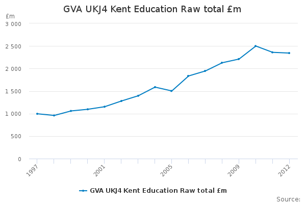 Download this time seriesGVA UKJ4 Kent Education Raw total £m