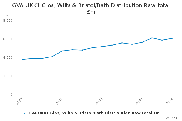 Download this time seriesGVA UKK1 Glos, Wilts & Bristol/Bath Distribution Raw total £m