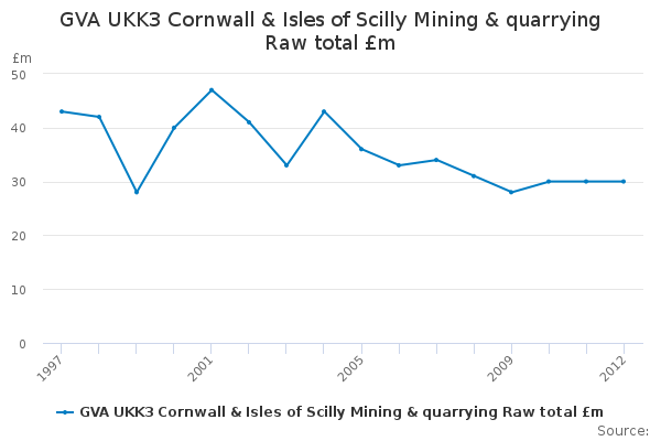 Download this time seriesGVA UKK3 Cornwall & Isles of Scilly Mining & quarrying Raw total £m