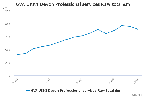 Download this time seriesGVA UKK4 Devon Professional services Raw total £m