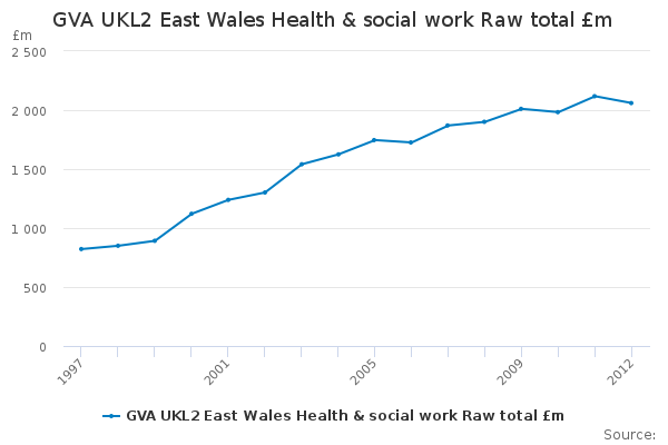 Download this time seriesGVA UKL2 East Wales Health & social work Raw total £m