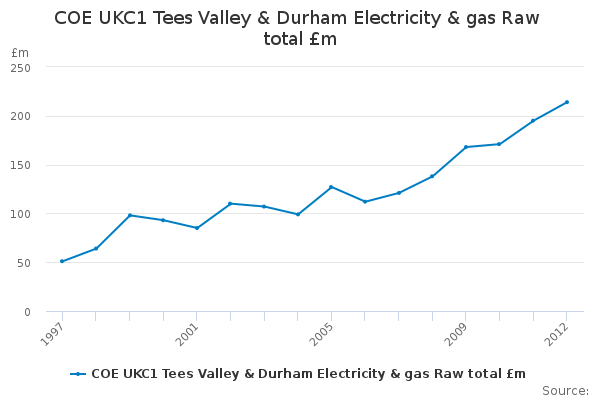Download this time seriesCOE UKC1 Tees Valley & Durham Electricity & gas Raw total £m